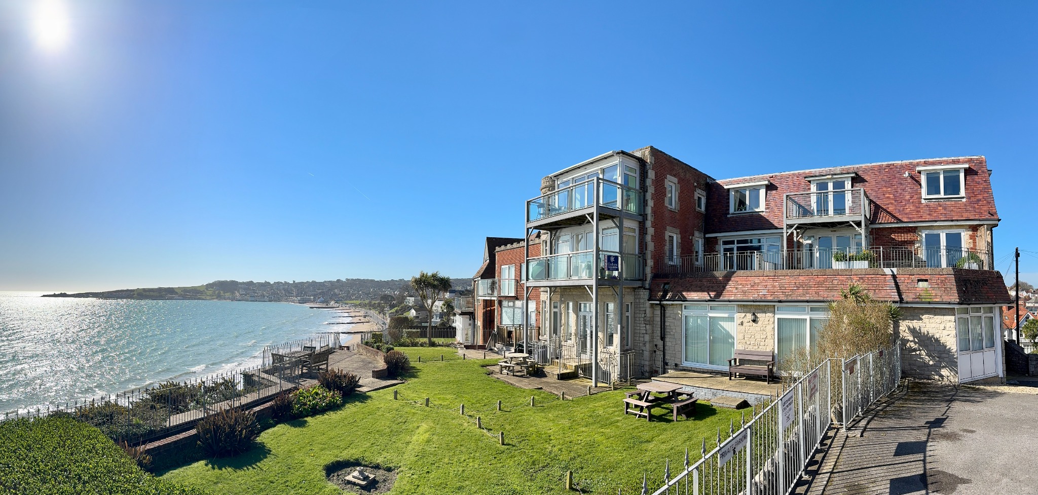 This superb split-level first floor apartment has a unique frontline position with magnificent panoramic views of Swanage Bay, to the Pier and the Isle of Wight in the distance.