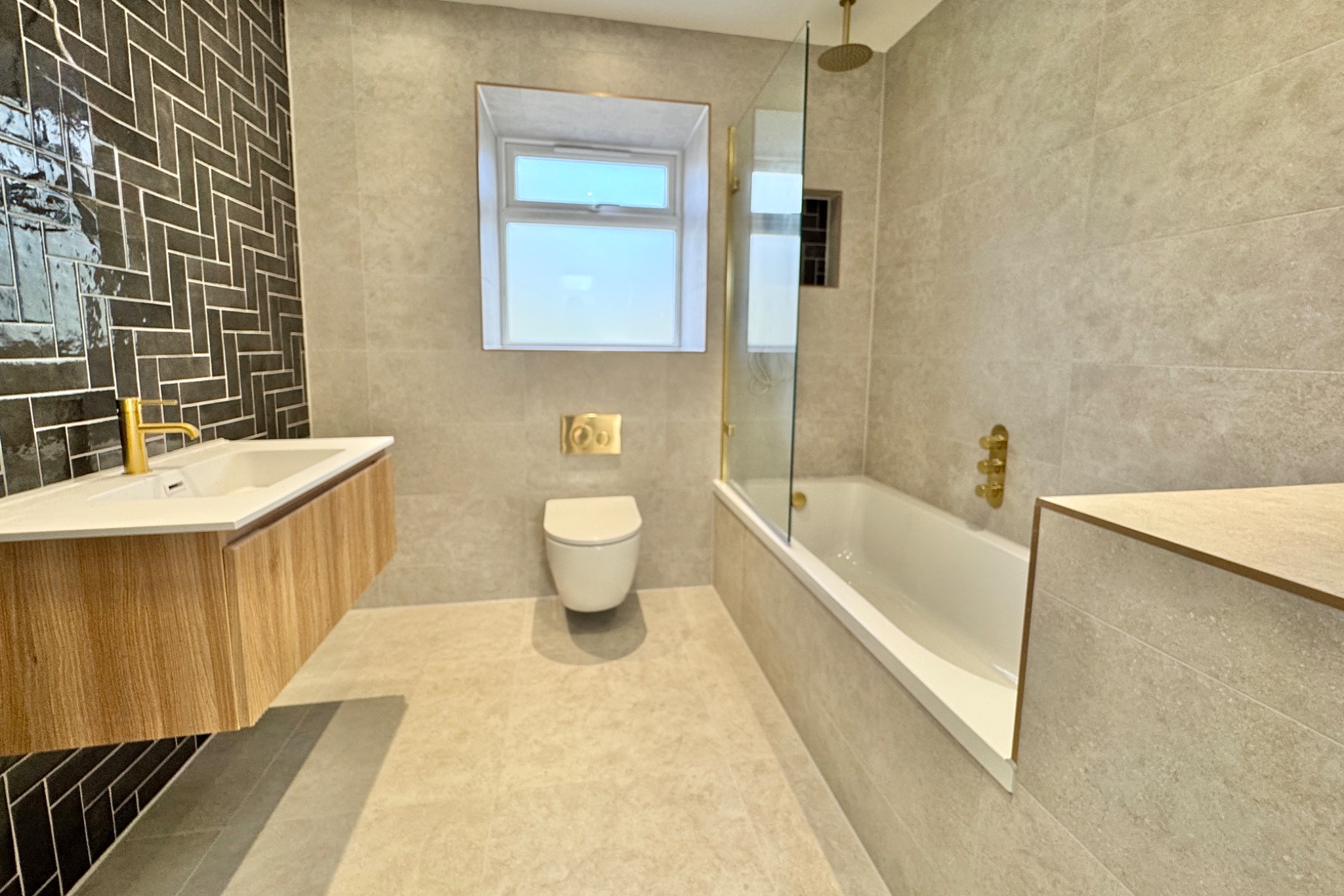 An impressive entrance welcomes you to this family home. The expansive, triple aspect living area spans the entire depth of the property forming a great social hub; the kitchen is fitted with an extensive range of luxury units, complementing worktops and quality appliances. Double doors to the glazed balcony overlooking the garden at the rear. There is also an exceptionally spacious ground floor bedroom with a large en-suite shower room. A cloakroom completes the accommodation on this level.