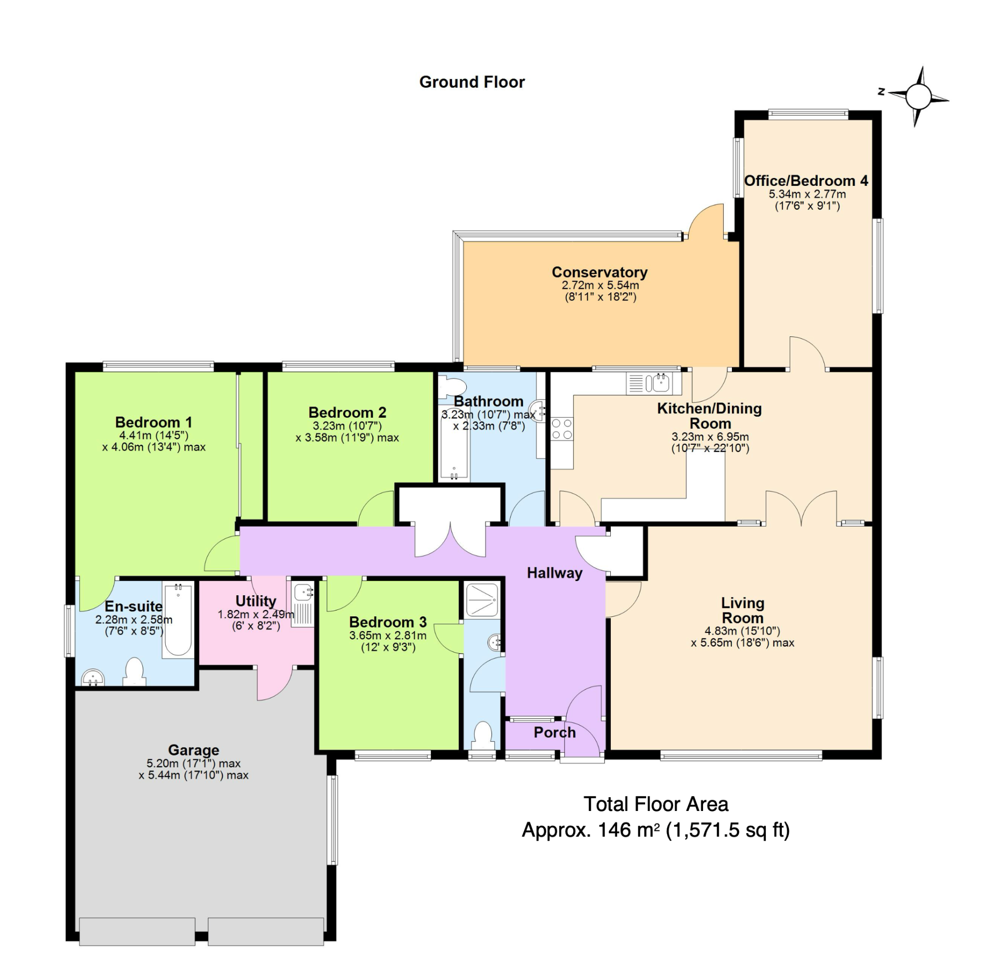 Garage 5.44m max x 5.2m max (17’10" max x 17’1" max)