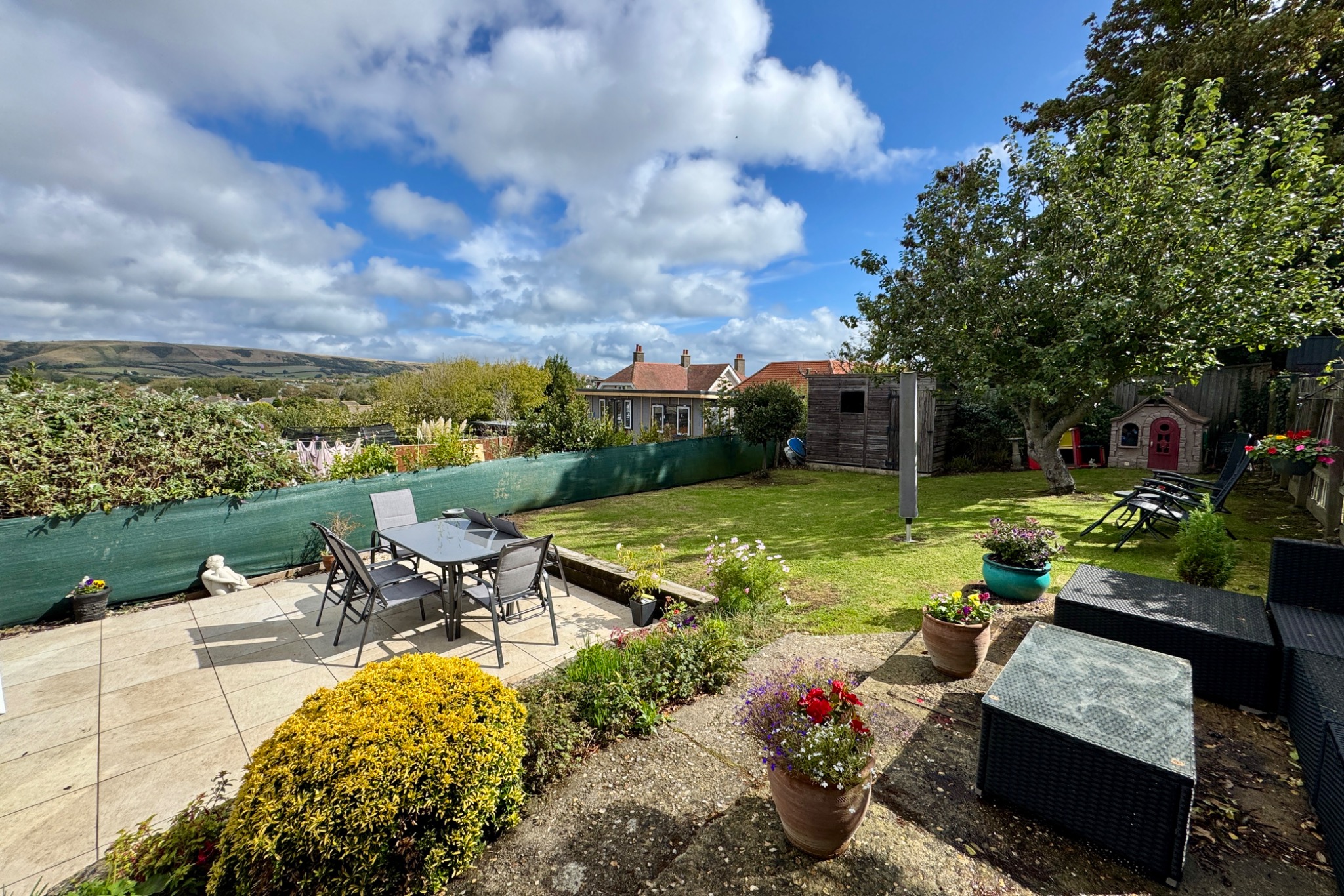 Outside, the front garden is brick paved and provides off-road parking for several vehicles. The attractive rear garden has views of the Purbeck Hills in the distance, and is partially lawned with paved areas, flower/shrub borders and beds and a timber garden shed.
