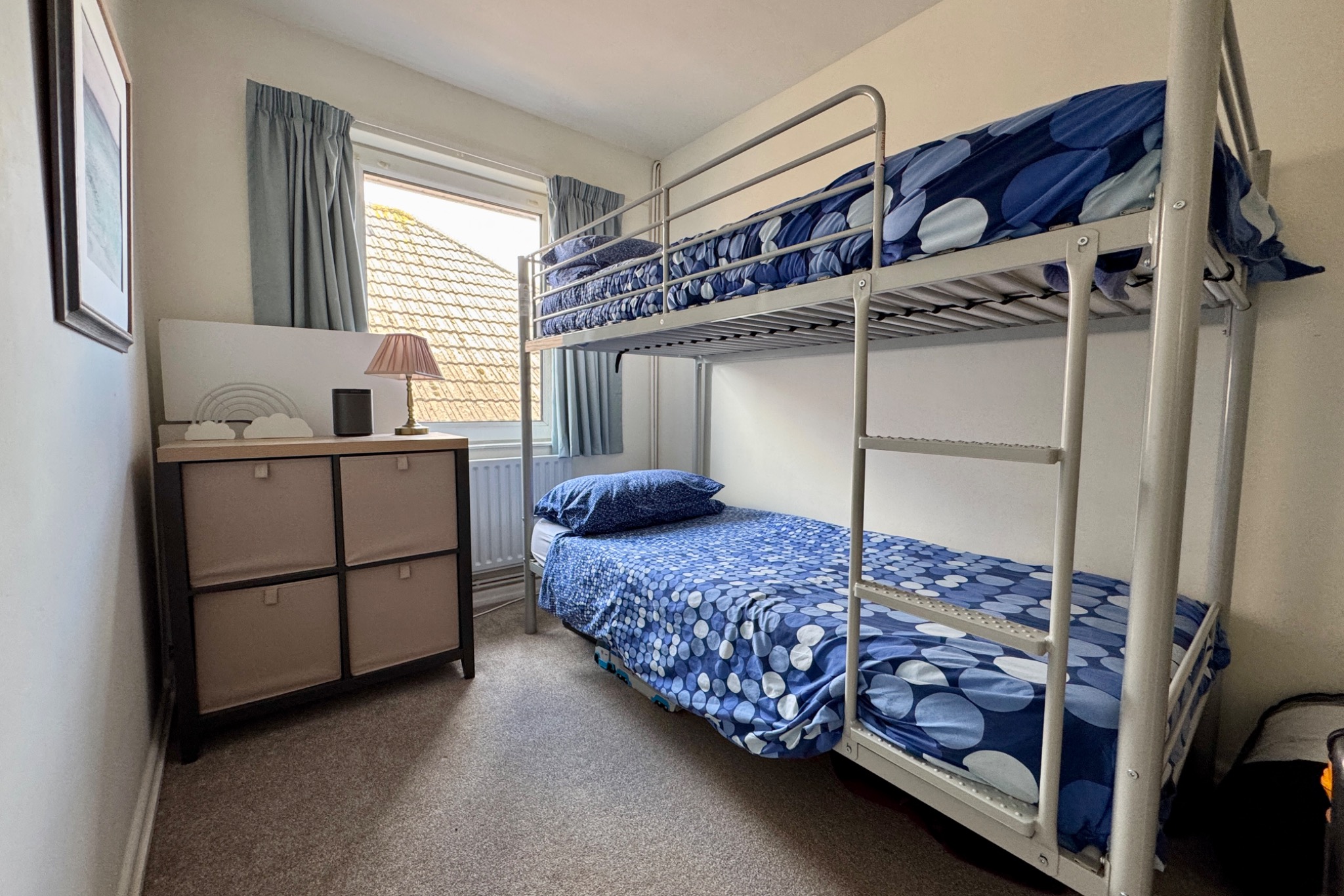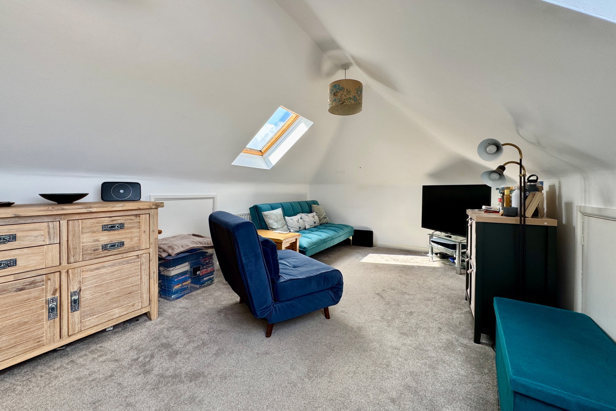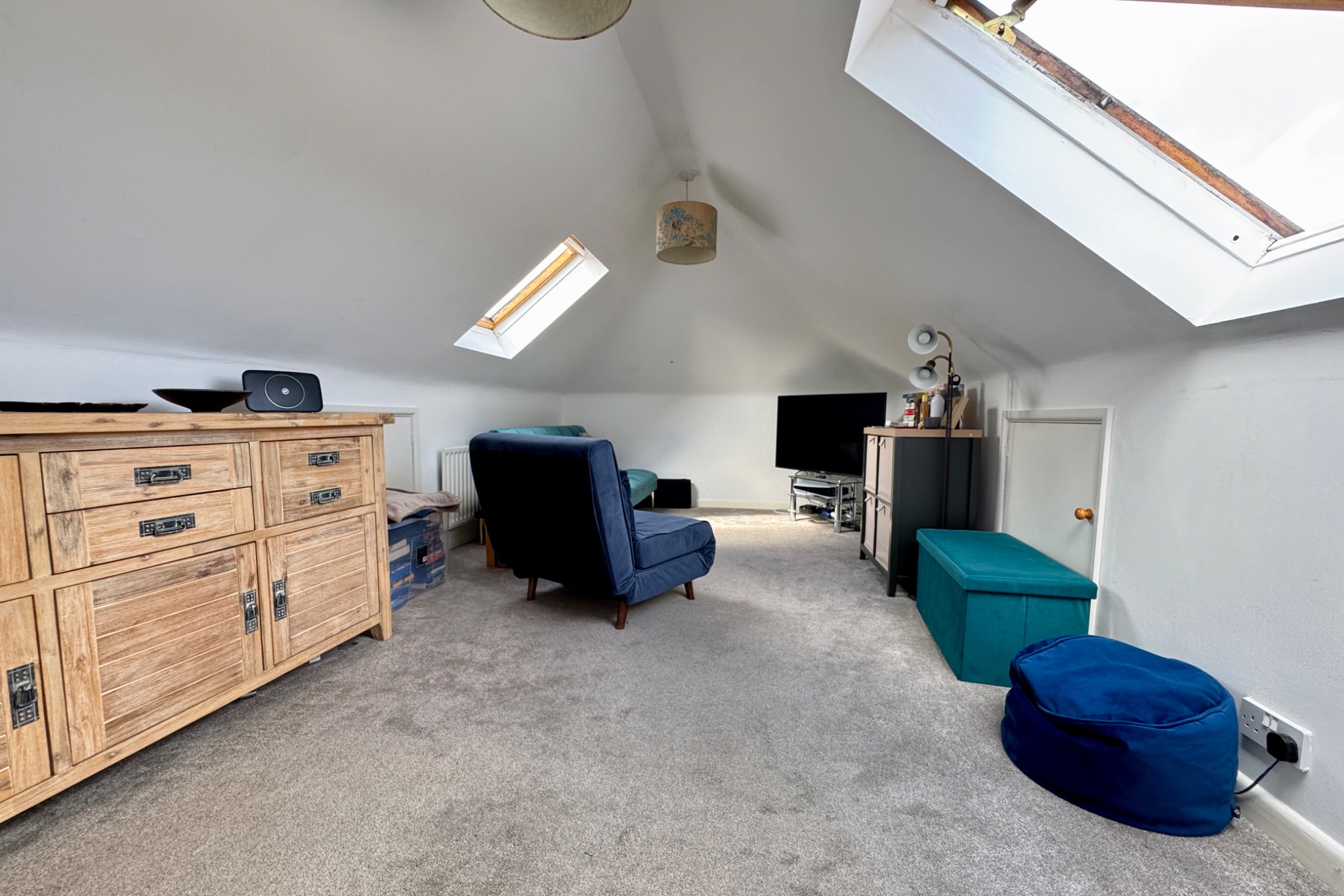 There are three bedrooms on the ground floor. Bedroom two is particularly spacious with the benefit of fitted wardrobes with sliding doors. Bedroom three is also a good sized double and bedroom four a single. The shower, fitted with a modern suite, and a separate WC completes the accommodation on this level. On the first floor is the principal bedroom which has South and North facing Velux windows giving panoramic views across the town to the Purbeck Hills and Swanage Bay. It also has the benefit of an en-suite WC.