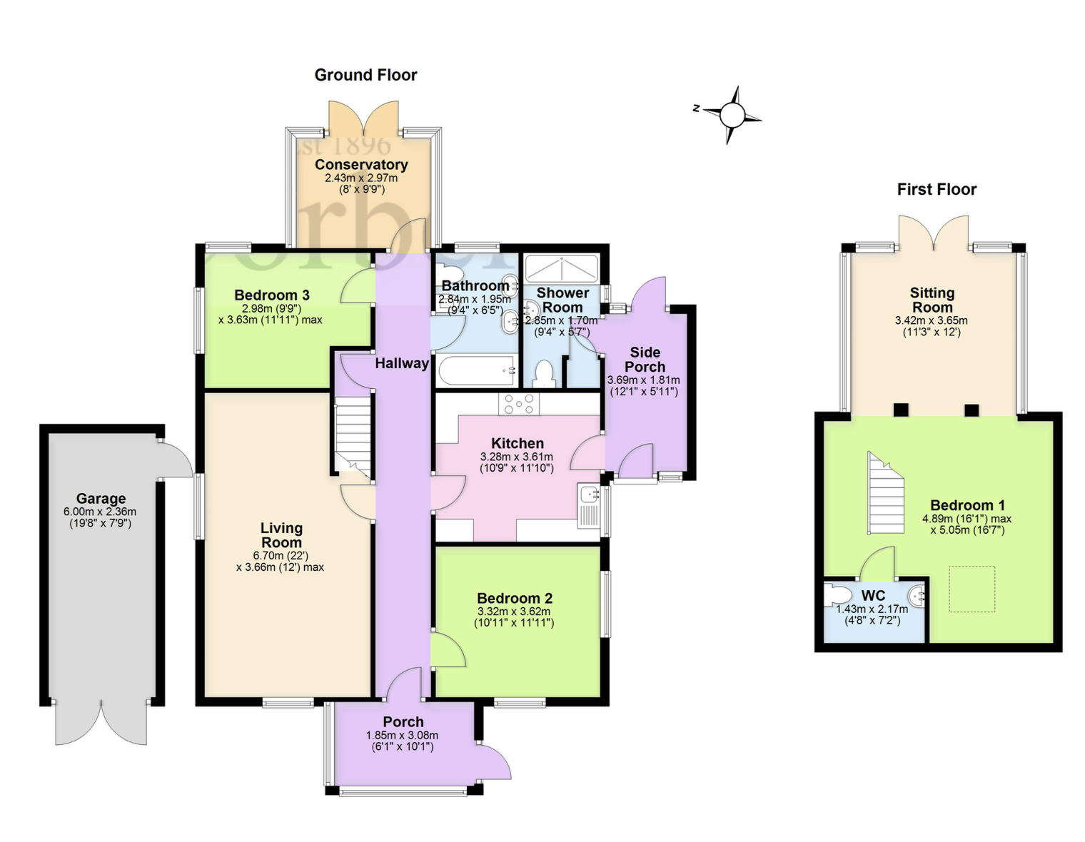 There are two good sized dual aspect double bedrooms on the ground floor. Bedroom 2 is at the front of the property and Bedroom 3 is at the rear overlooking the garden. The family bathroom is fitted with a stylish suite comprising a panelled bath with shower over, twin wash basins with fitted cupboards under and WC. A separate shower room completes the ground floor accommodation.