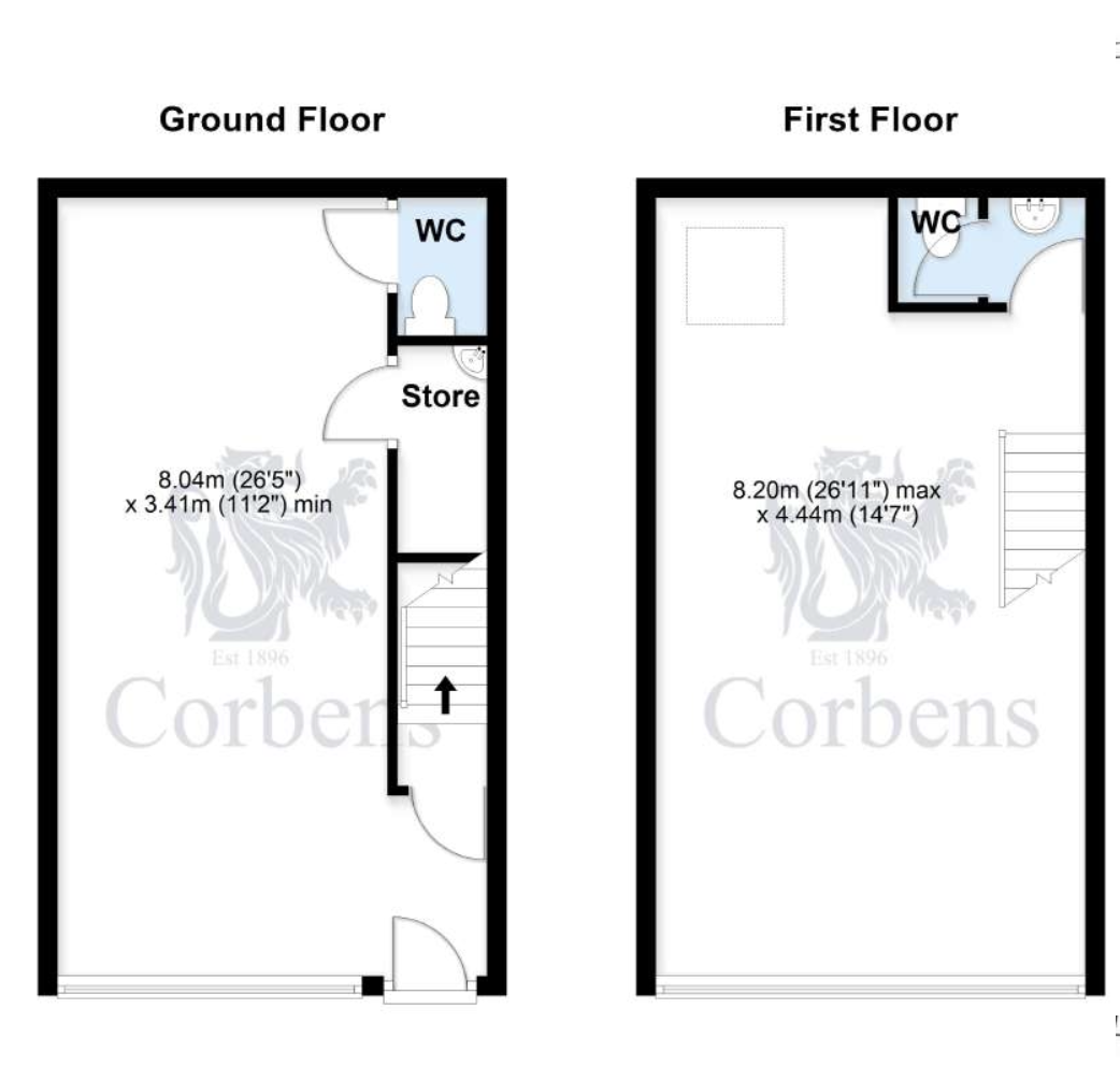 Retail area 8.04m x 3.41m min (26’5” x 11’2” min) of approximately 27m2, large display window, WC, storage cupboard.