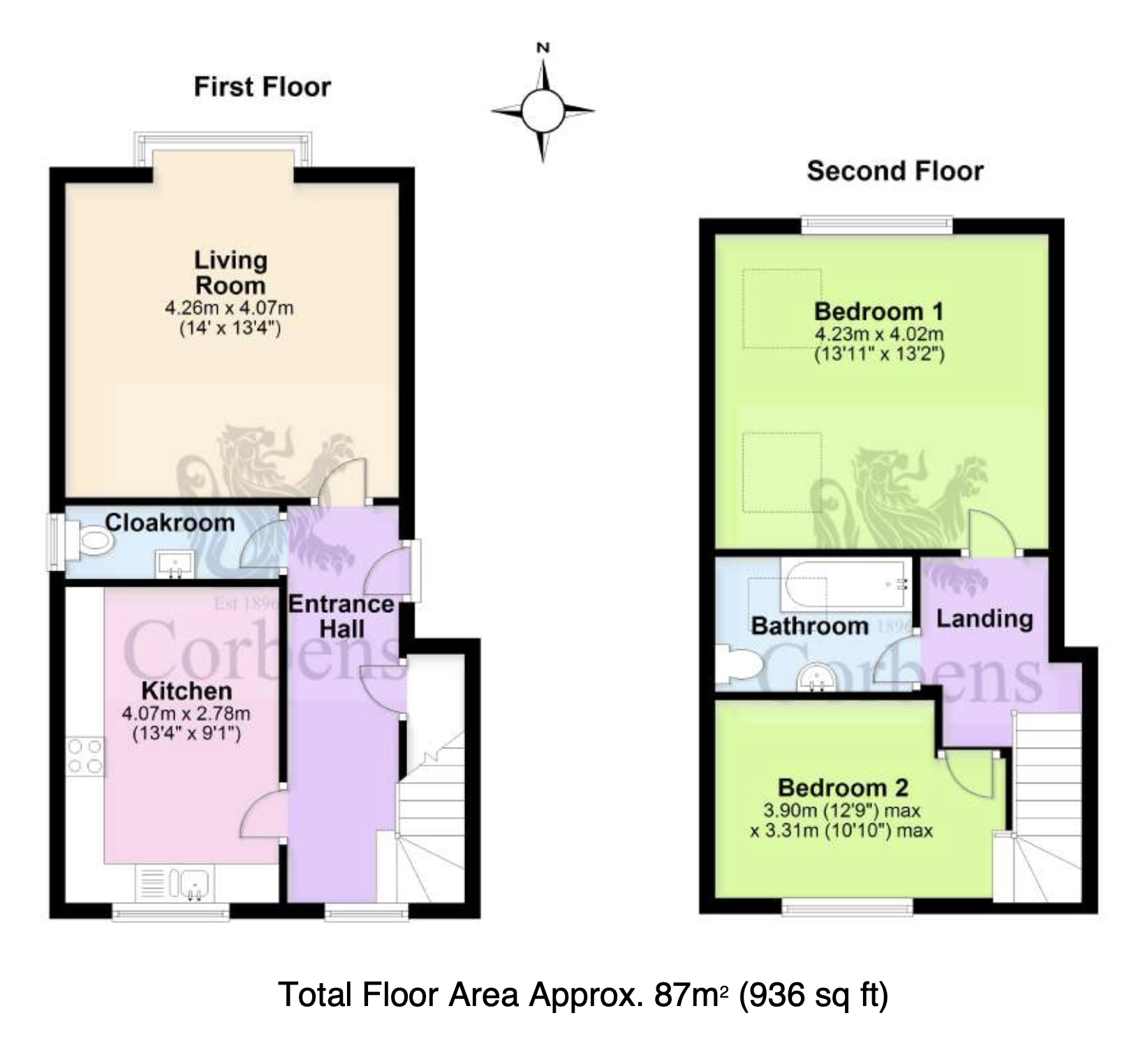 On the second floor there are two double bedrooms. The principal bedroom is particularly spacious and has views across the town to the Purbeck Hills in the distance. Bedroom two is South facing. The bathroom is fitted with a modern white suite and completes the accommodation.