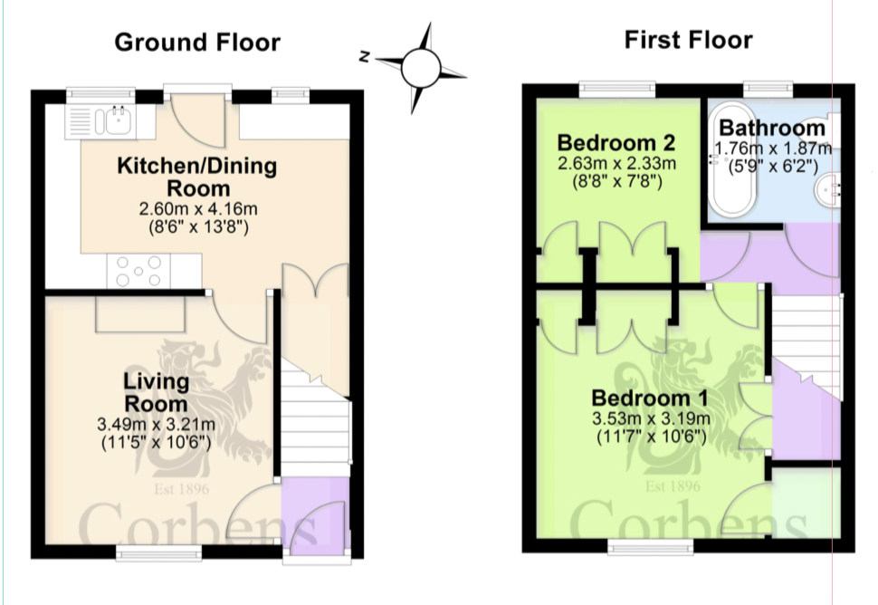 Bedroom 2 2.63m x 2.33m (8’8" x 7’8")