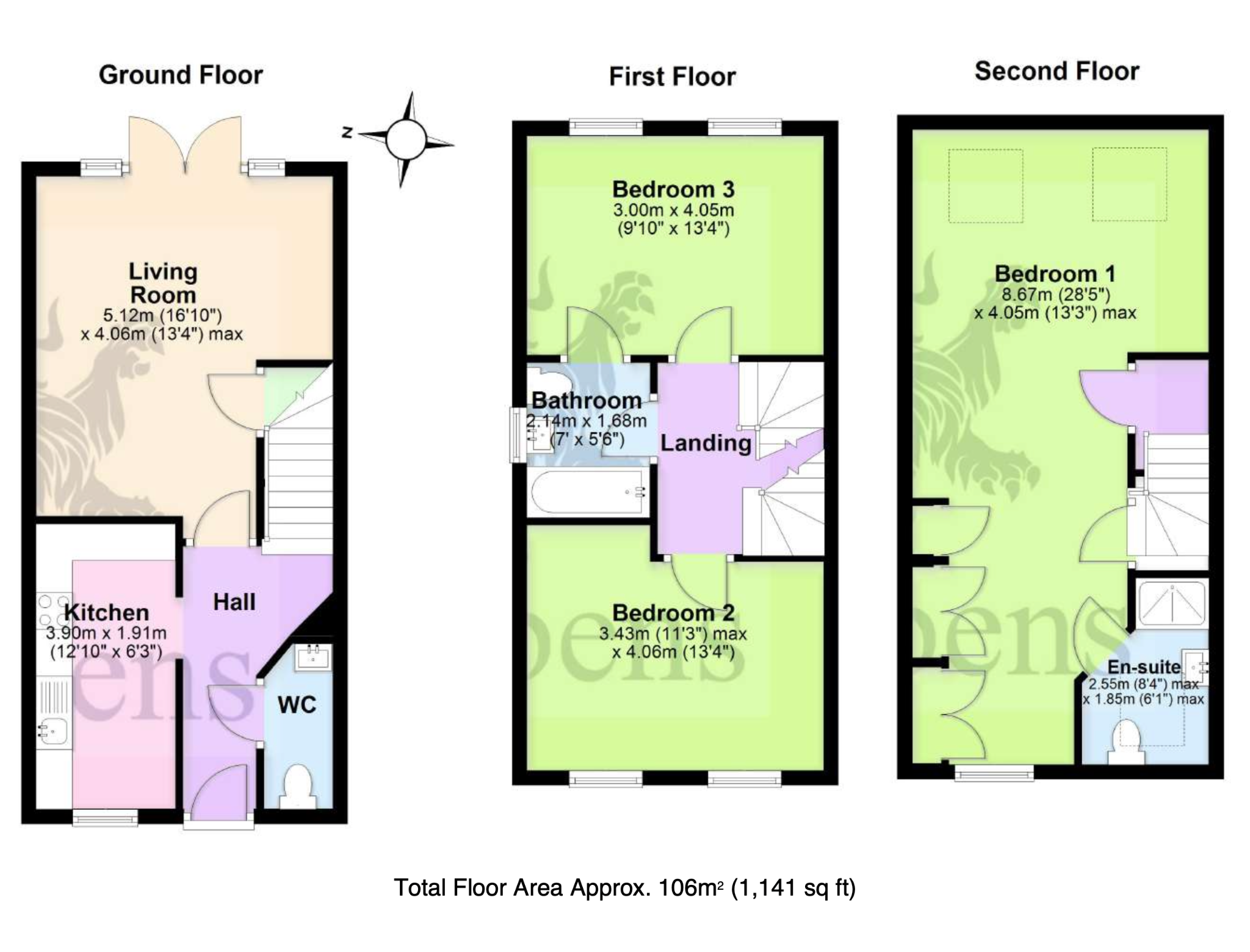 Bedroom 1 8.67m x 4.05m max (28’5" x 13’3" max)