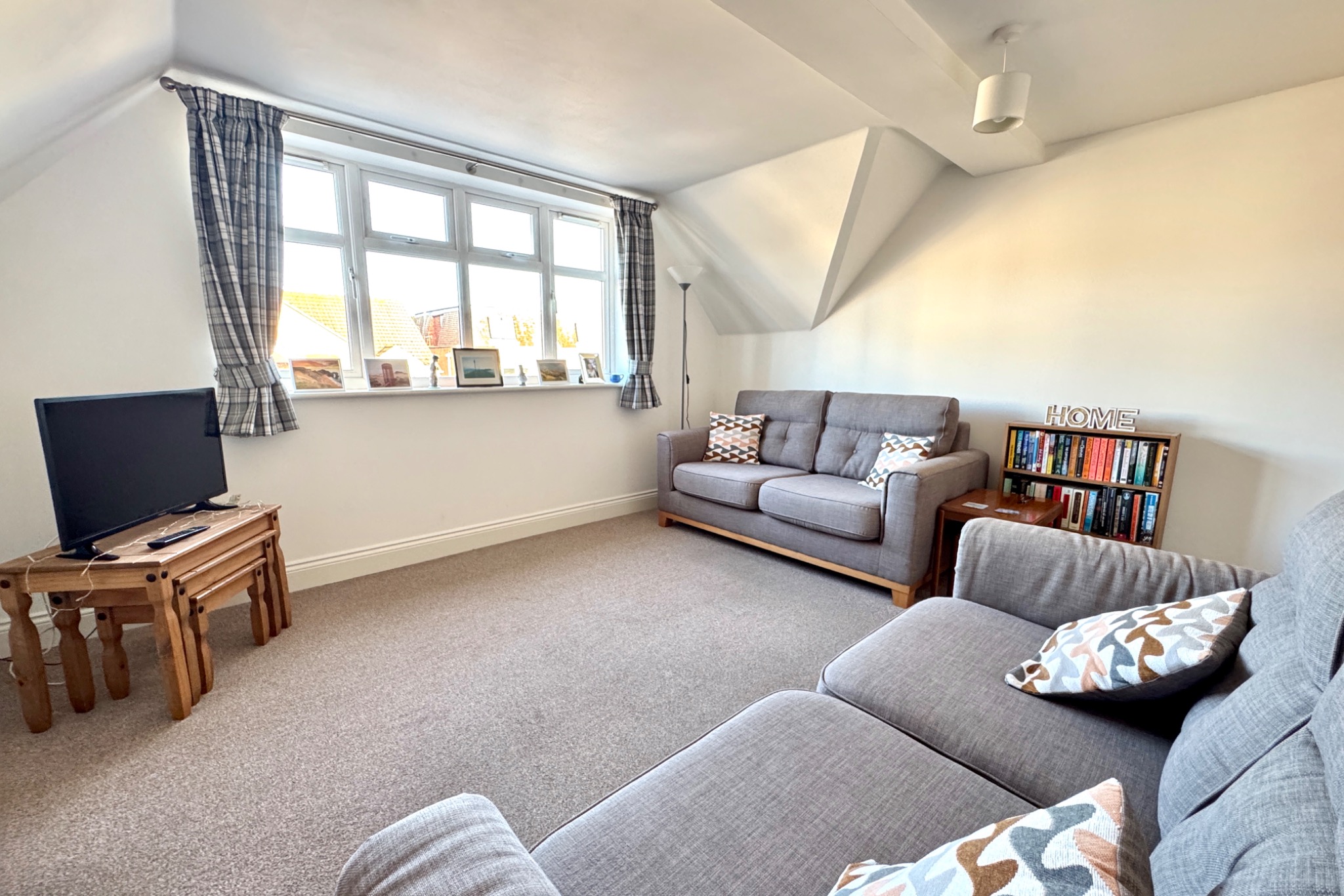 The entrance hall welcomes you to the apartment and leads through to the spacious living room with ample space for a dining table. Leading off, the kitchen is fitted with a range of light units, contrasting worktops, integrated appliances and space for fridge. There is also a utility cupboard in the hall housing the washing machine.
