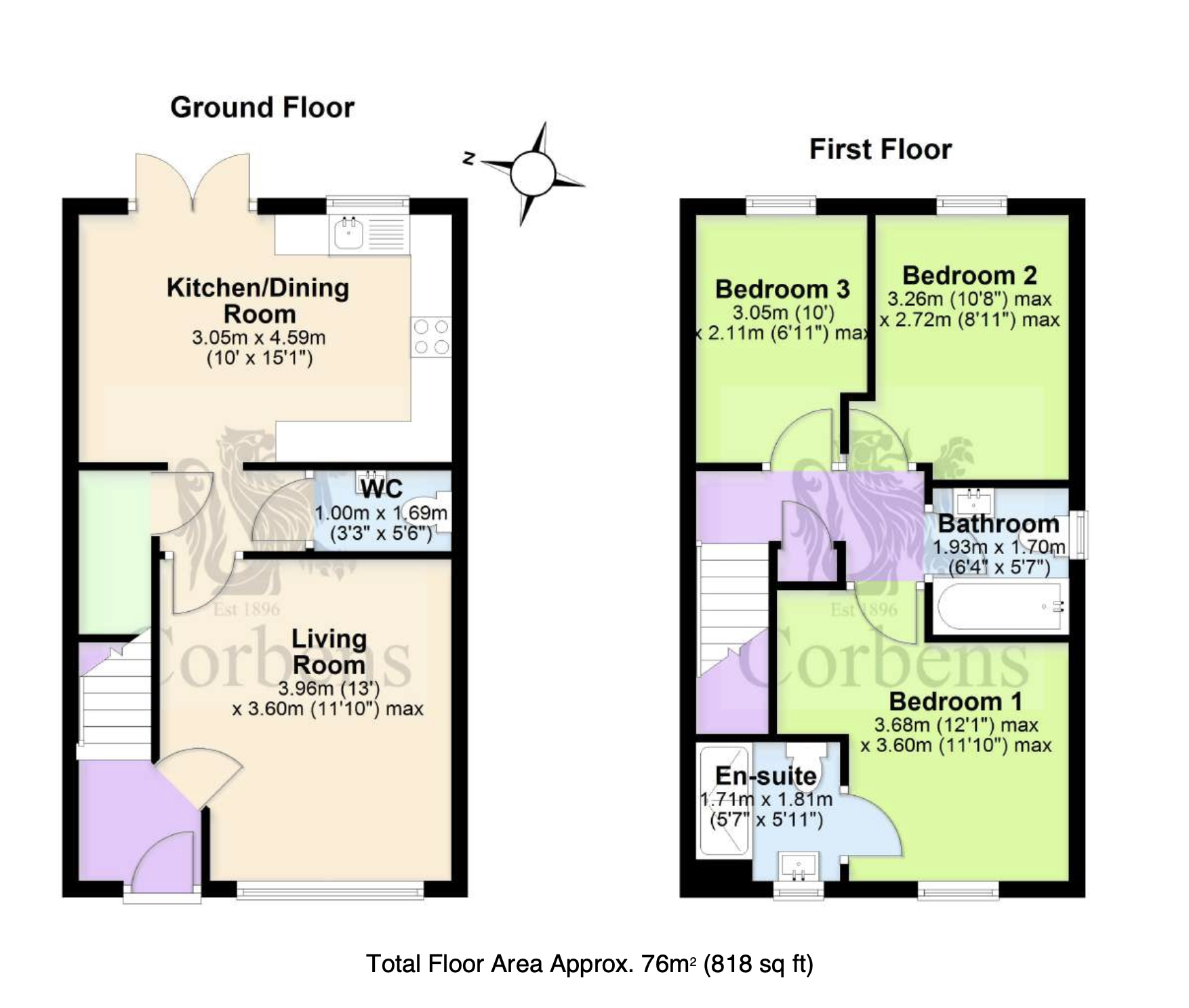 Living Room 3.96m x 3.6m max (13′ x 11’10" max)