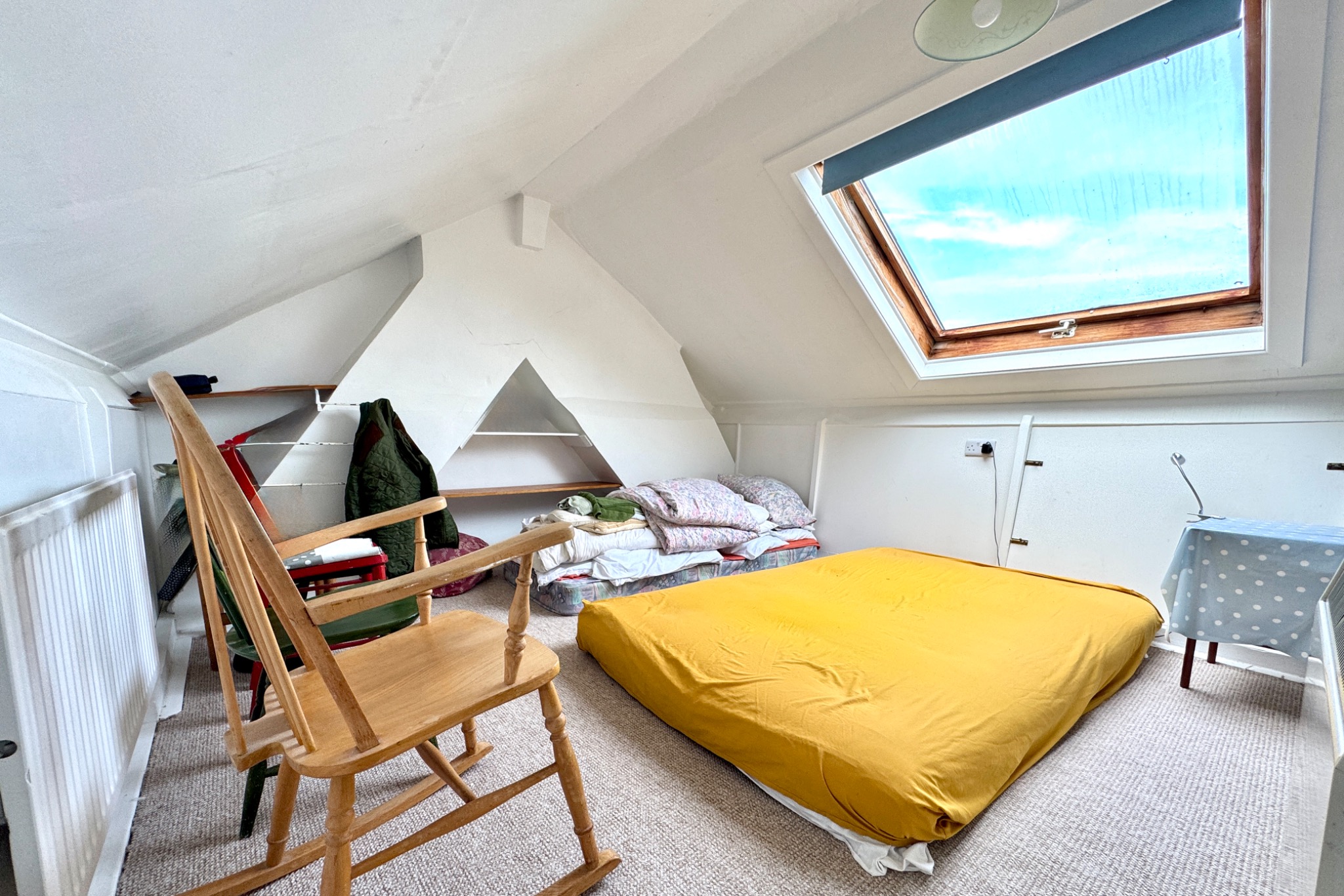 There are two double bedrooms on the first floor. Bedroom 1 has fine rural views and Bedroom 2 is South facing overlooking the garden. The family bathroom is on this level and comprises a ‘P’ shaped panelled bath with shower over, pedestal wash basin and WC. Approached by a steep enclosed staircase, there is a further double bedroom on the second floor with a Velux window giving panoramic views over the Purbeck Hills, Corfe Castle and Swanage Bay in the distance.