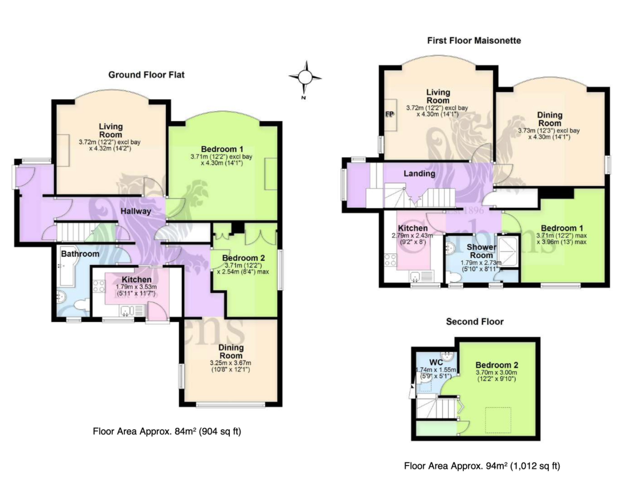 First & Second Floor Maisonette – There are two large dual aspect reception rooms at the front of the property, each with South facing bay windows; the living room also benefits from an attractive fireplace. The kitchen has views across to the Purbeck Hills and is fitted with a range of light wooden units, tiled worktops. The principal bedroom is a good sized double and has views of the Purbeck Hills and Swanage Bay in the distance. The shower room completes the accommodation on first floor. Bedroom two is also a good sized double with similar view to the main bedroom and also has the benefit of an en-suite WC.