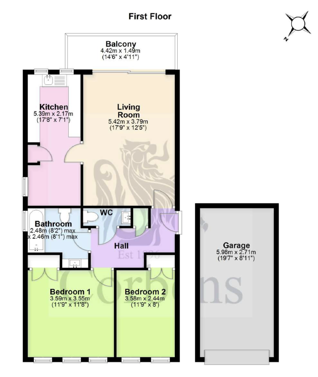 Bedroom 2 3.58m x 2.44m (11’9" x 8′)