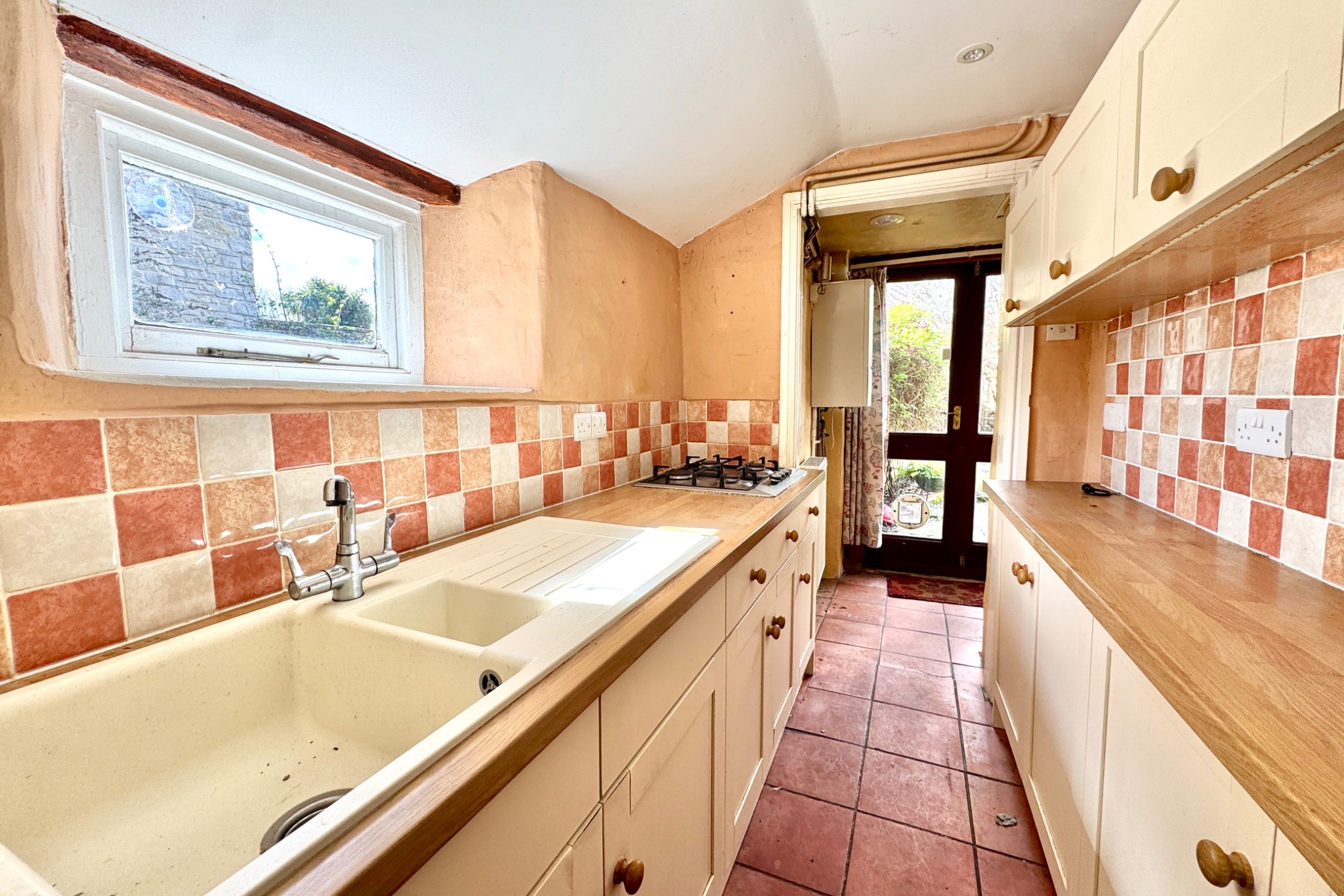 The small entrance leads through to the character filled living room with Inglenook stone fireplace, window seat and beamed ceiling. The kitchen is fitted with a range of light units, contrasting wood effect worktops and integrated gas hob and electric oven. The small rear lobby gives access to the rear garden. There is also a cloakroom on this level.