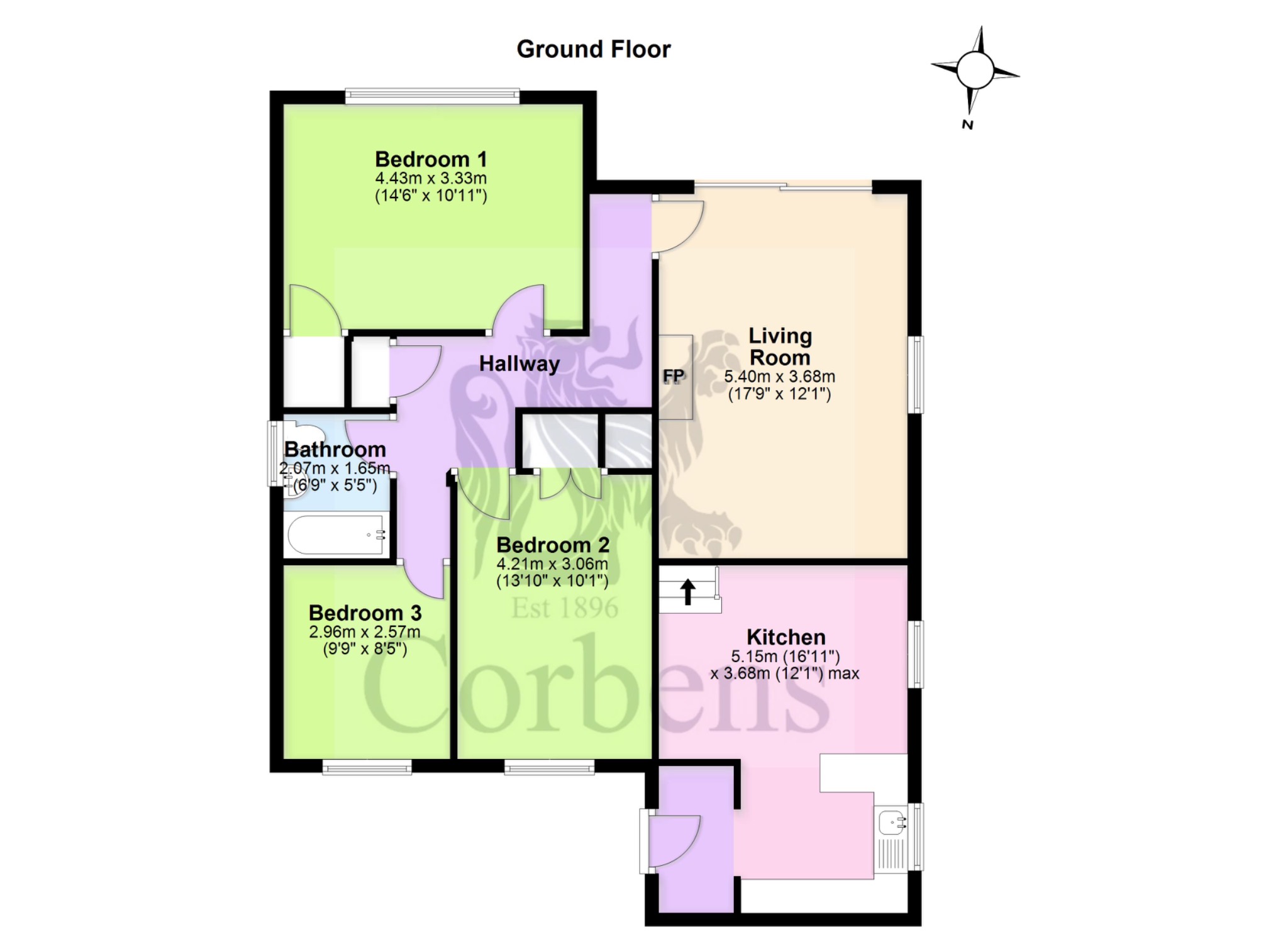 Bedroom 1 4.43m x 3.33m (14’6" x 10’11")