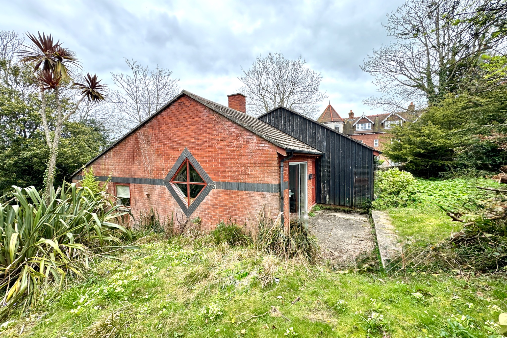 This detached bungalow, formerly the Warden’s Bungalow for the adjoining Youth Hostel, stands on the southern slopes of Swanage approximately 300 metres from the Town Square and seafront. It is thought to have been built during the 1990s and is of traditional cavity construction with external elevations of brick and timber cladding under a pitched roof covered with interlocking tiles.