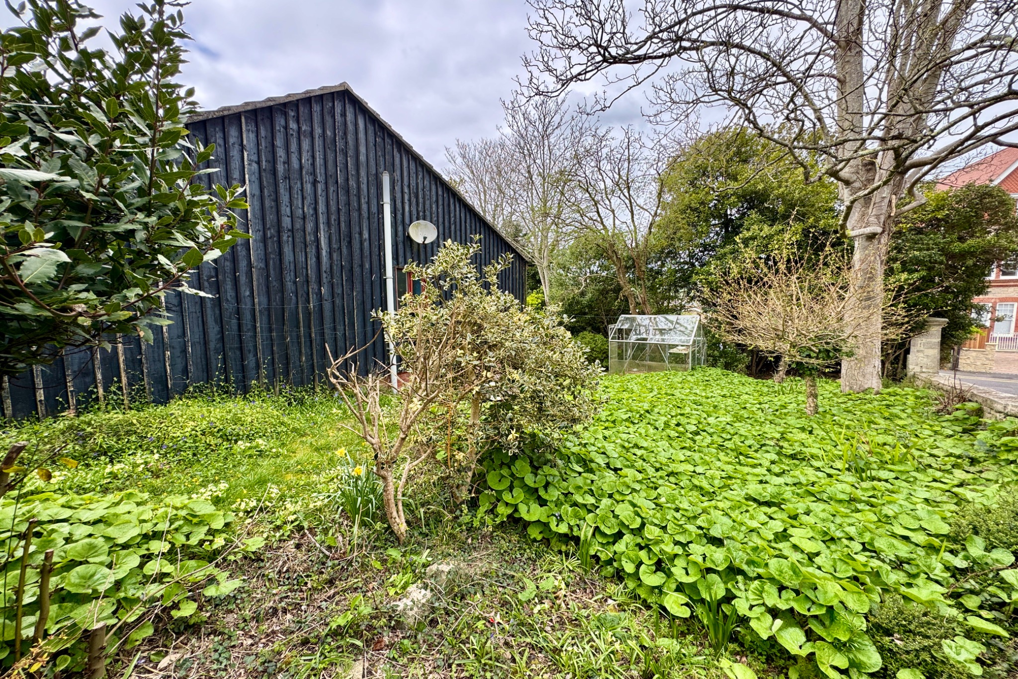 Outside, the garden surrounds the property and is partially lawned with shrub borders/beds, a South facing paved patio area and greenhouse. A shared driveway gives access to a parking space at the rear.