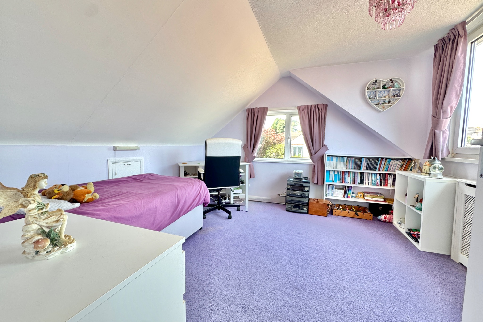 There are two double bedrooms on the ground floor. The principal room is particularly spacious and is fitted with a range of bedroom furniture. Bedroom two is also a good sized double and has access to the paved patio area and garden. The spacious family bathroom is fitted with a white suite including bath and separate corner shower. On the first floor, there is a further double bedroom which is dual aspect and enjoys views over rooftops to the Purbeck Hills in the distance. The shower room, fitted with a modern white suite has access to the attic room and completes the accommodation.