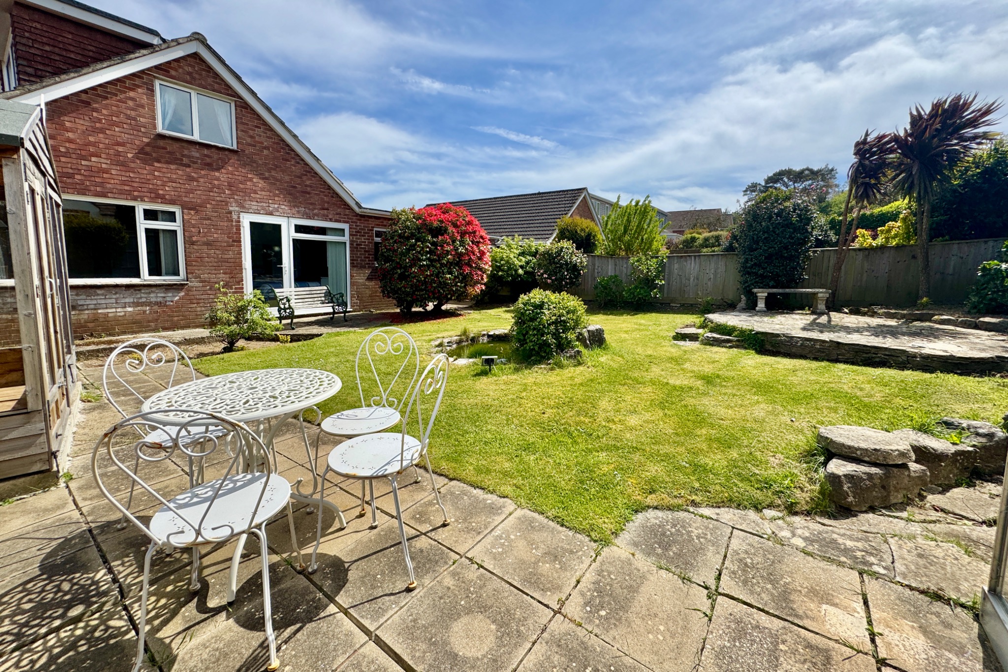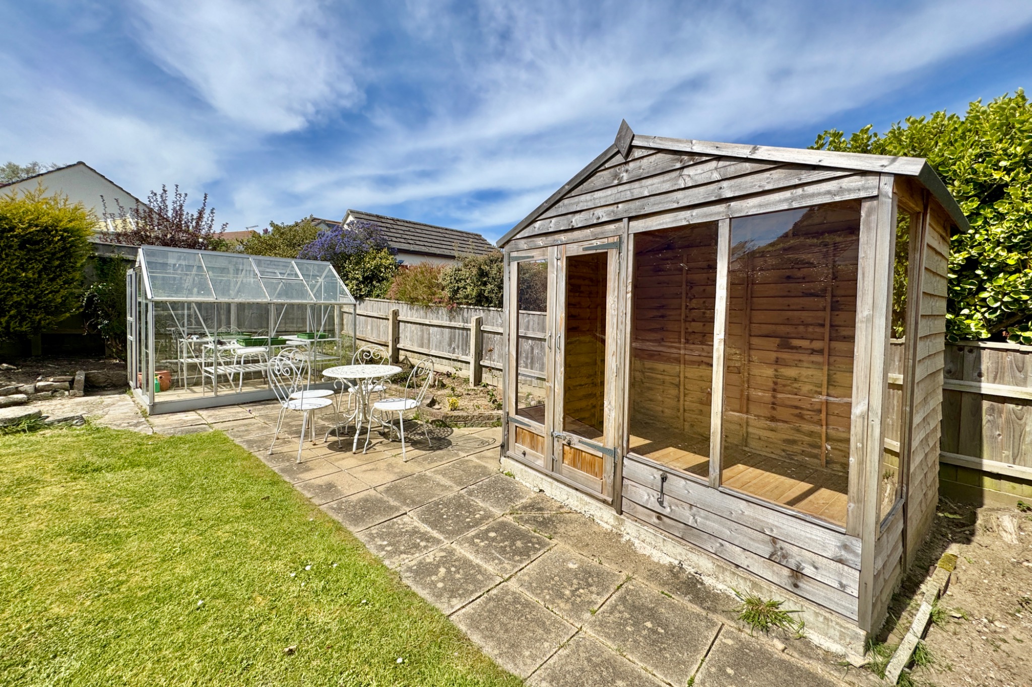 Outside, the front garden is lawned with shrub and flower borders. The driveway provides off-road parking and leads to the attached garage. At the rear, the West facing garden is attractively landscaped with lawn, paved seating areas, flower beds and shrubs, timber summerhouse and a greenhouse.